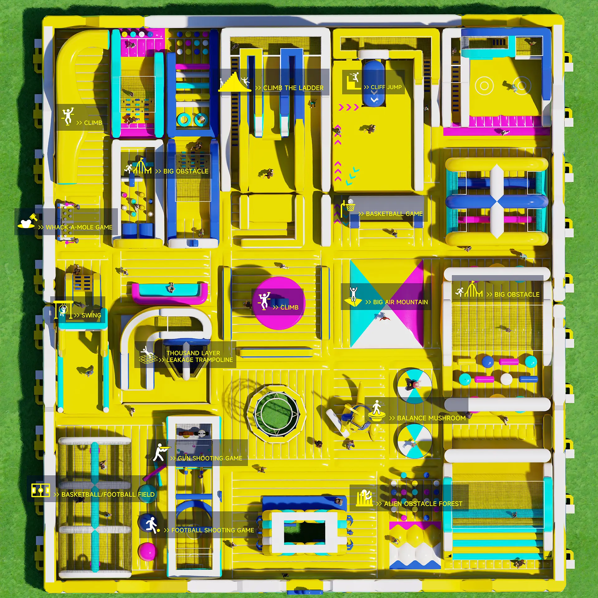 Our designers integrate the most popular game elements into your inflatable theme park to maximize visitor engagement.