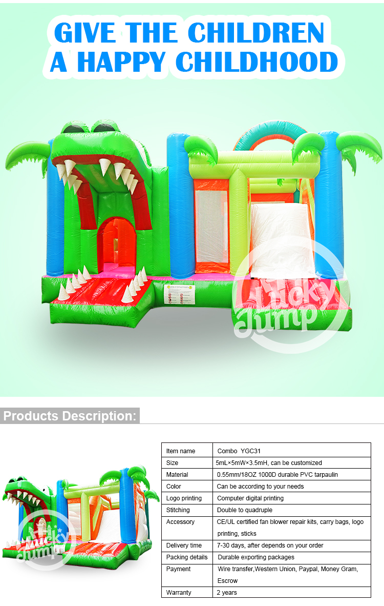 Crocodile Themed Inflatable Bounce House for Kids' Parties