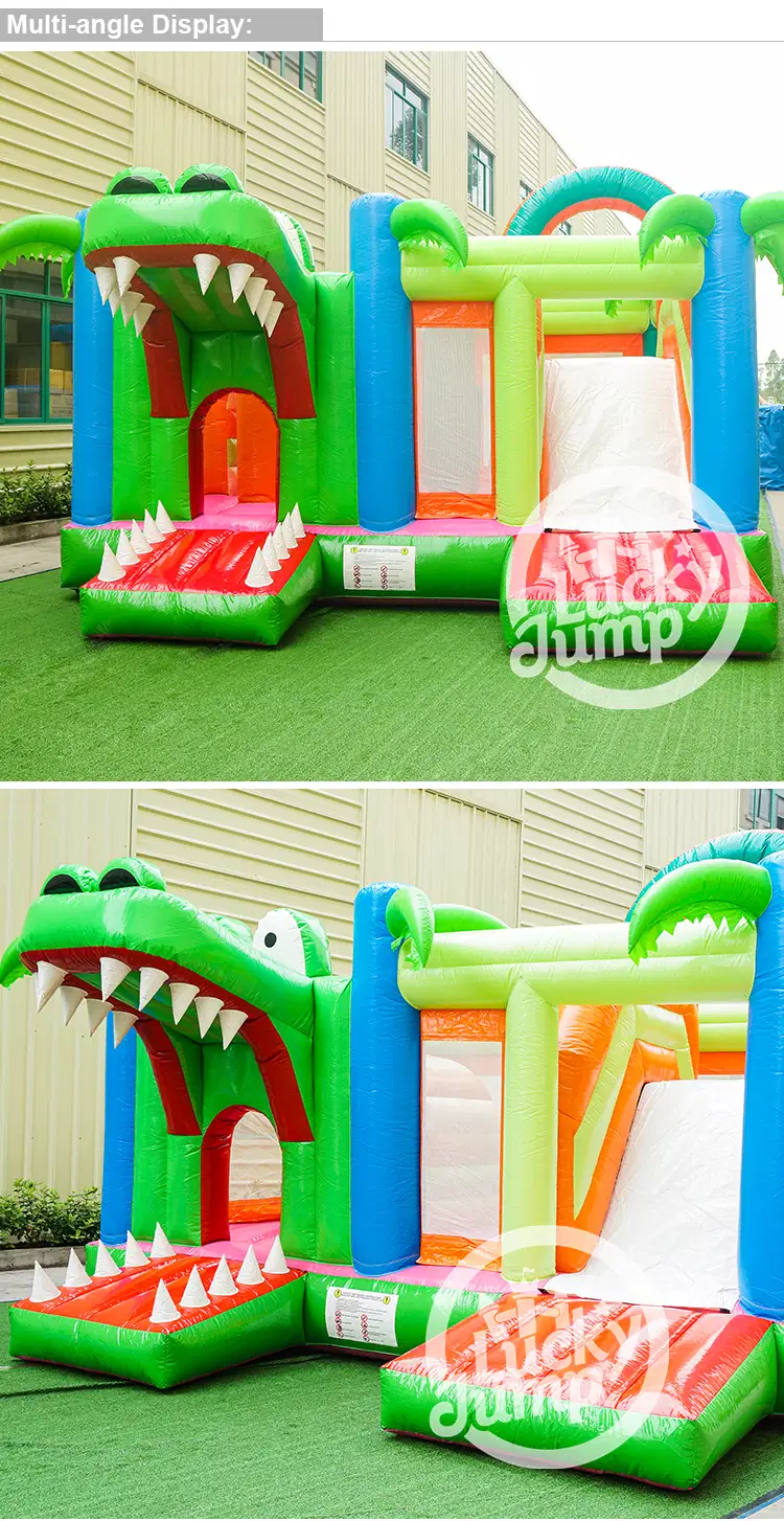 Bring jungle excitement to any celebration with PANGAO's Crocodile Themed Inflatable Bounce House — an adventurous, kid-friendly attraction that turns playtime into a wild exploration.