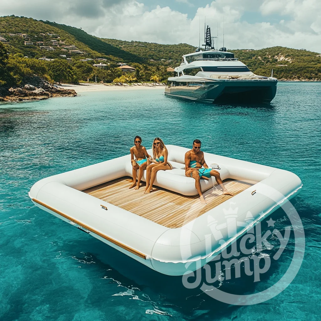 At LuckyJump Inflatables Customize, we offer inflatable floating docks for boats that deliver both flexibility and security. Perfect for lakes, marinas, and open waters, our docks provide a reliable platform for securing watercraft. Made from high-quality, marine-grade materials, they are designed to withstand harsh conditions while ensuring durability and safety.