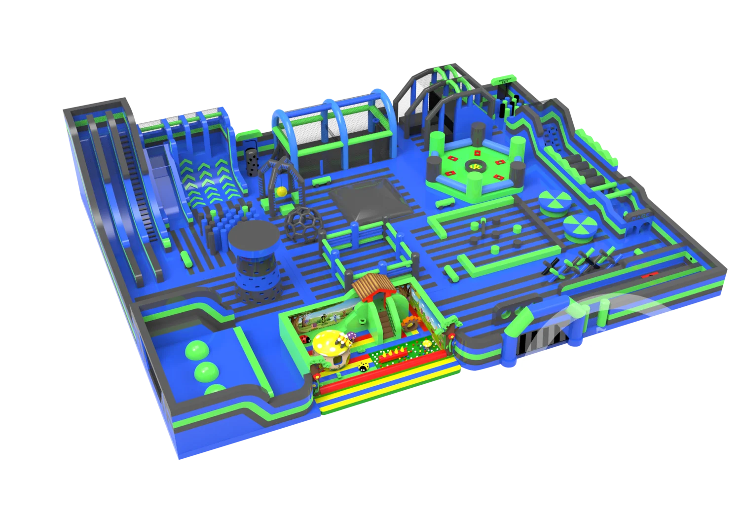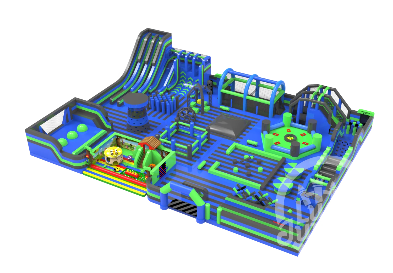 Welcome to the Thrilling Dark Blue Dinosaur Inflatable Park, where excitement meets safety in an unforgettable prehistoric adventure. Perfect for visitors of all ages, this large-scale inflatable park brings dinosaurs to life with vibrant colors and engaging activities.