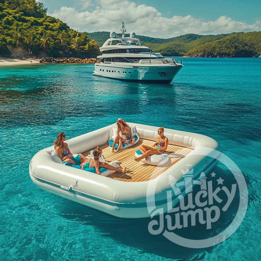 Di LuckyJump Inflatables menyesuaikan, kami reka bentukDok terapung kembung dengan permukaan anti lincir dan tepi bertetulangUntuk memastikan keselamatan dan prestasi maksimum. Dibina menggunakan bahan berkualiti tinggi, tahan UV, dok ini menyediakan platform yang selamat dan stabil untuk menaiki, dok, atau bersantai di atas air.