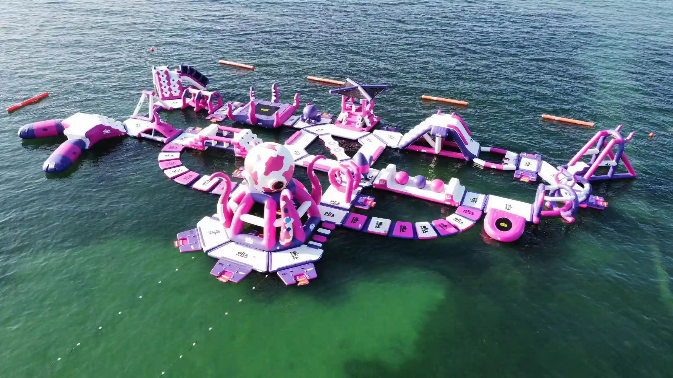 Make a splash at your next outdoor event with the Outdoor Fun Pink Inflatable Water Park – a high-energy, visually stunning aquatic attraction designed for maximum engagement and safety. Whether you're hosting a summer festival, corporate family day, resort activity, or large-scale public event, this pink-themed inflatable water park delivers unforgettable fun for kids and adults alike.