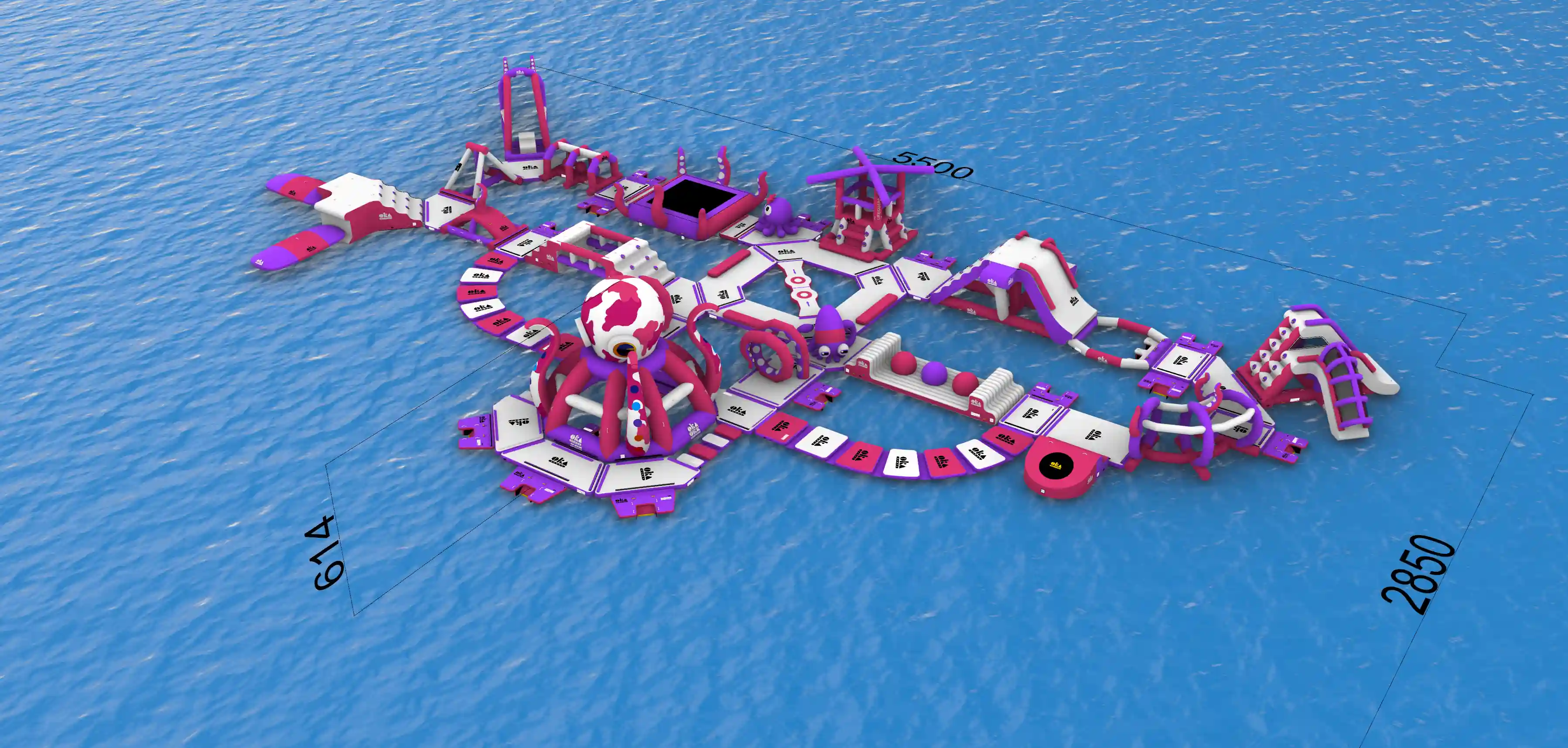 This giant octopus-themed inflatable water park combines imaginative design with commercial-grade engineering. The vibrant purple and pink color palette creates high visual impact, while the modular design allows for flexible configurations – perfect for rental companies, family entertainment centers, resorts, and public events.